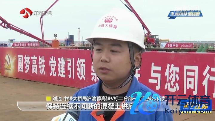 中铁大桥局沪渝蓉高铁V标二分部一工区工夫顾惜东谈主刘逍先容,保抓齐集不阻隔的混凝土供应,弃取“双点浇筑、同步鼓舞、分层浇筑、逐级振捣”的施工政策,保险施工胜仗。