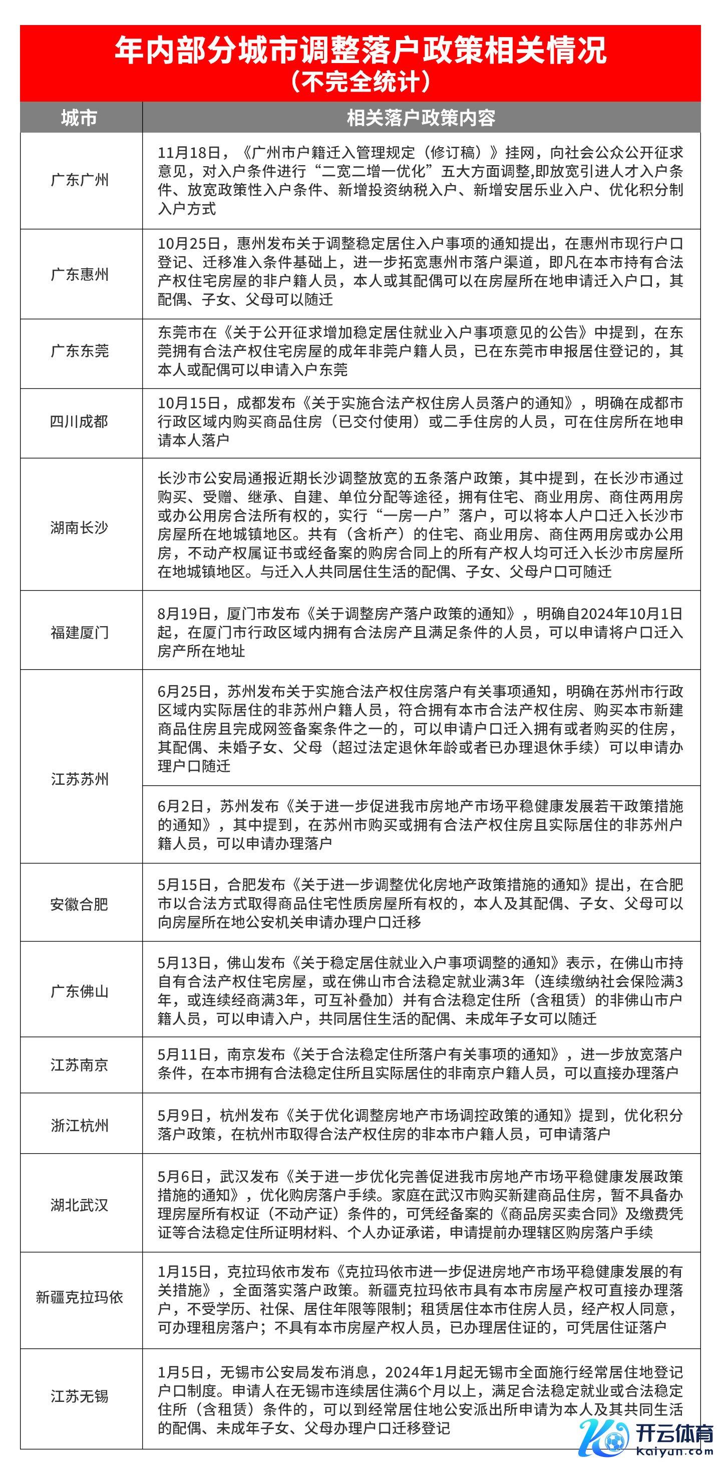 除广州外,2024年以来,寰宇至少有东莞、佛山、惠州、苏州、南京、无锡、成齐、厦门、合肥、杭州、长沙、武汉等超20个城市调理放宽入户政策。