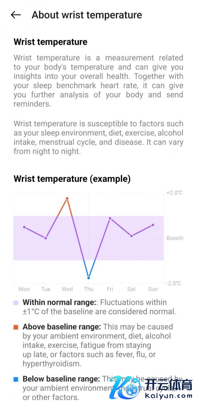 腕温测量:通过手腕测量体温,需邻接率领至少五天并包含一次相当四小时的寝息记载才调确保准确性。