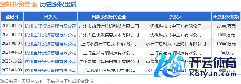 本站音尘,字据天眼查APP表示,在1月25日登记的一则股权出质信息(登记编号:0620250126002903)中,杭州宝轩投资管制有限公司出质其所握有的广州市动景诡计机科技有限公司股权,出质股权数额为27000万元,质权东说念主为优视科技(中国)有限公司。