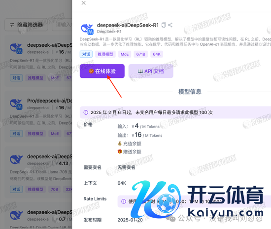 注册见效之后,每个模子官方都会送50万Tokens的额度,雷同能在模子广场平直选满血版在线体验: