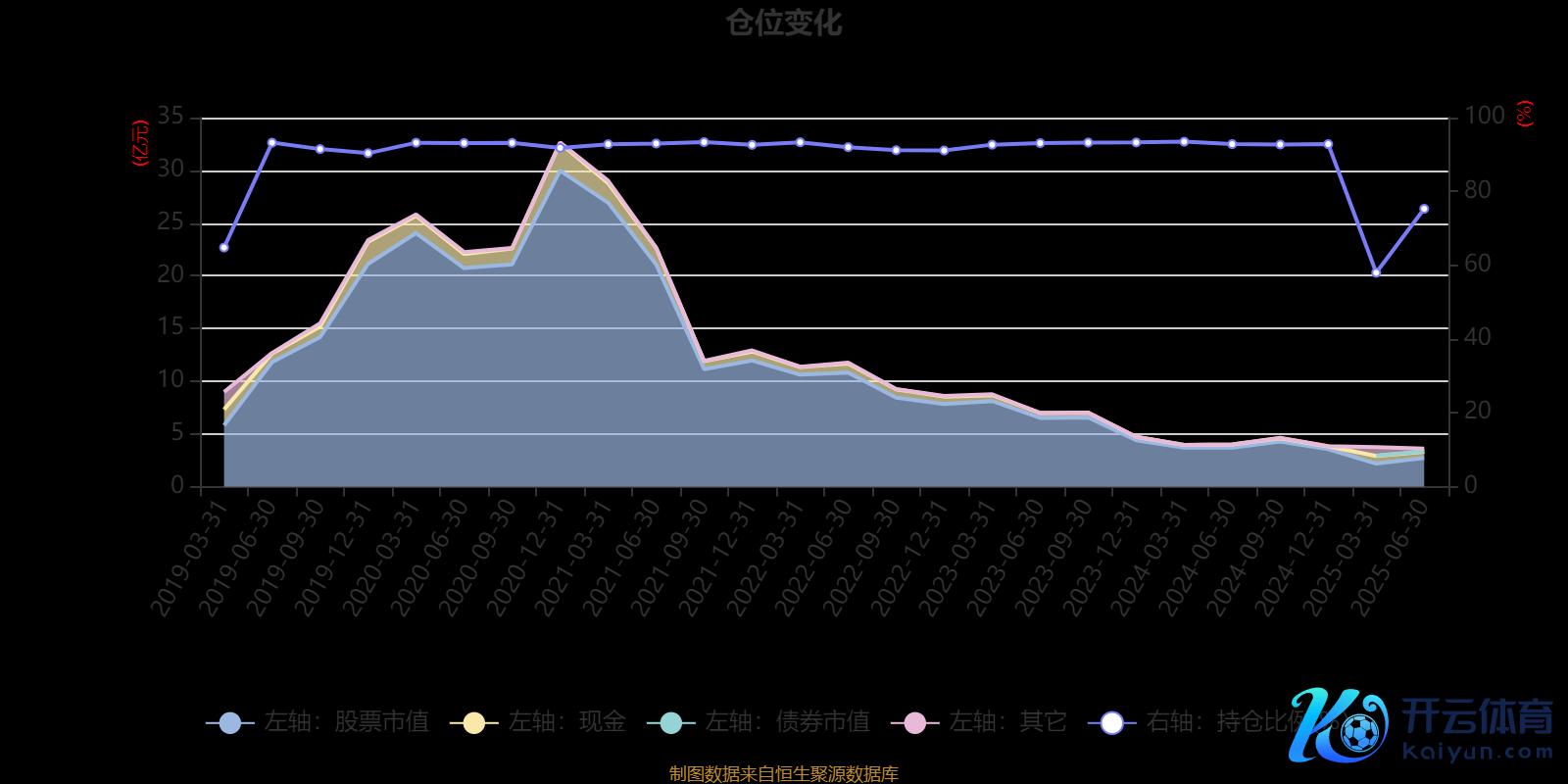 据如期论说数据统计,近三年平均股票仓位为88.3%,同类平均为85%。2024年一季度末基金达到93.47%的最高仓位,2025年一季度末最低,为57.95%。