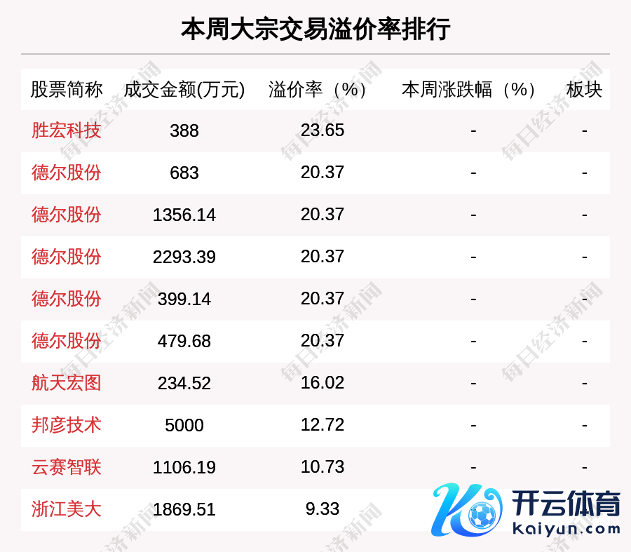 溢价交往方面,本周有9笔大量交往溢价率逾越10%。